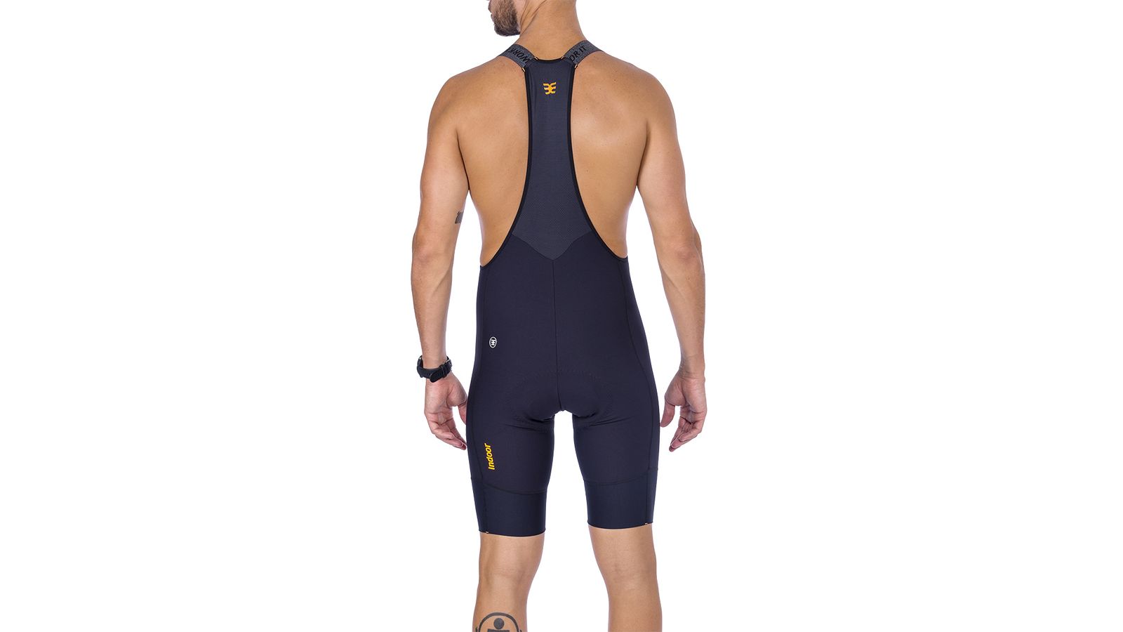 Tecido AirMesh ultrafino e respirável no recorte da frontal do bretelle, mantendo o atleta sempre seco e confortável.
