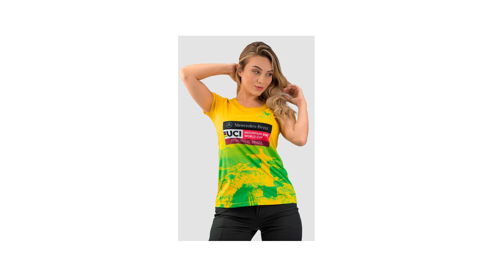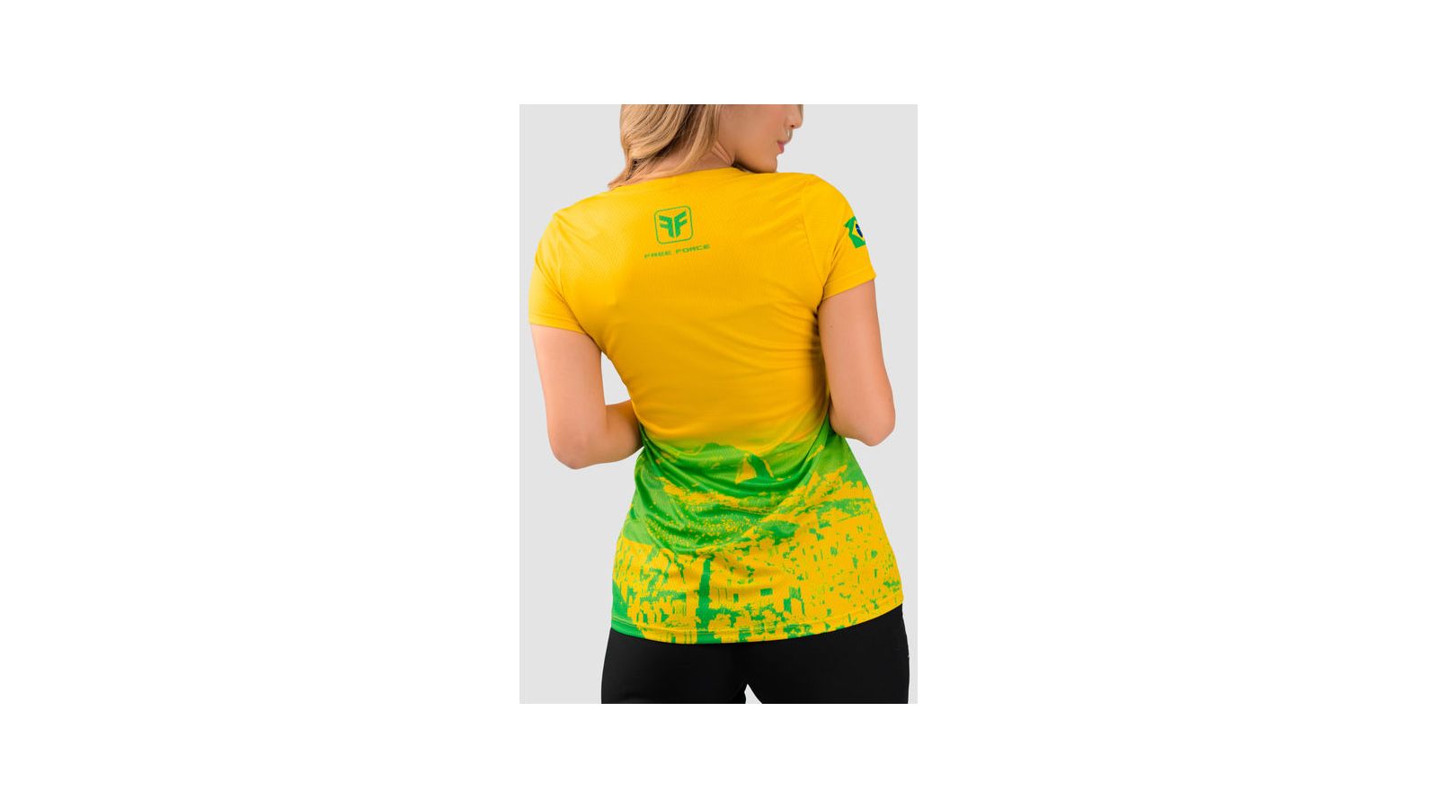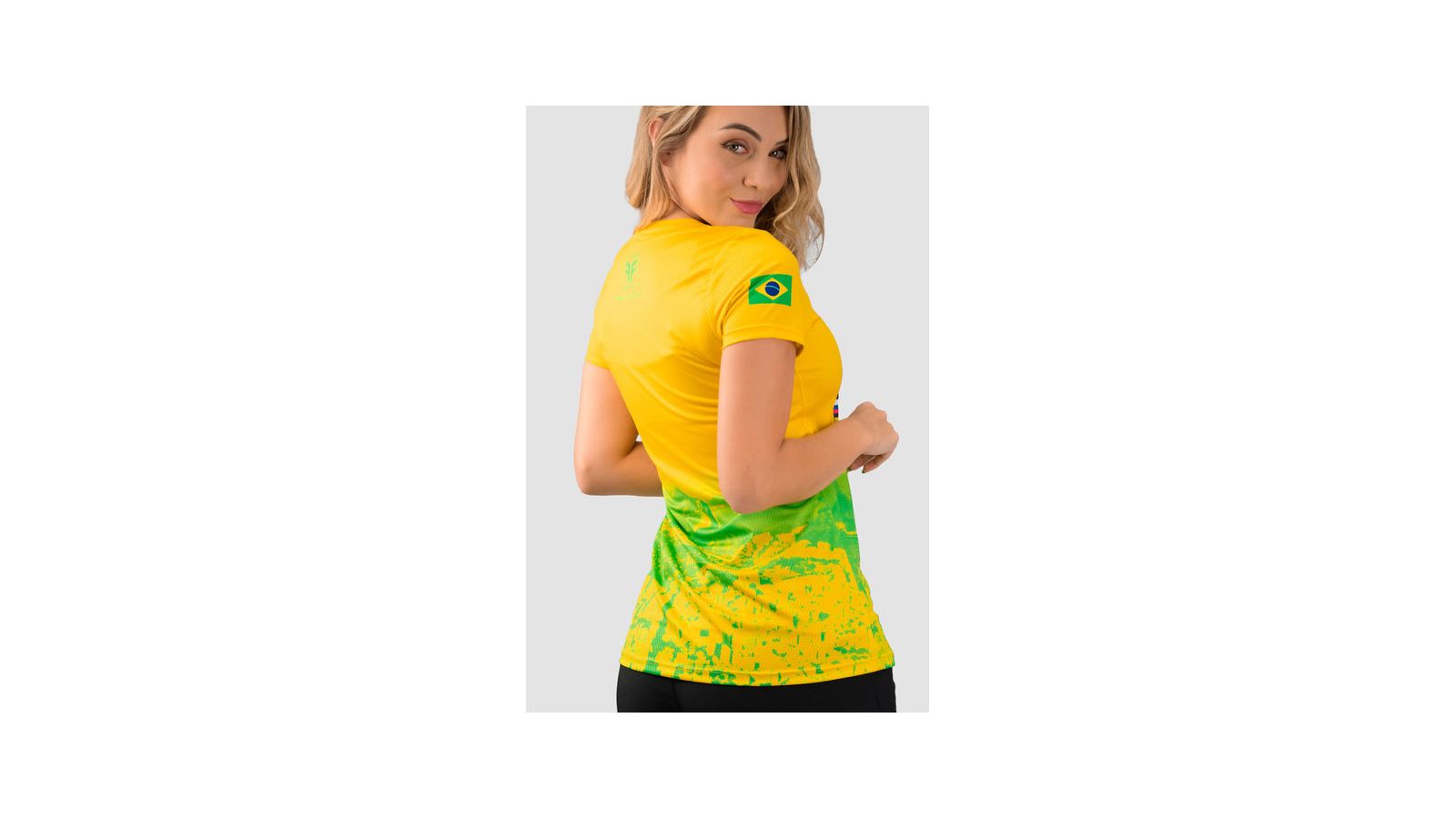 Feita em poliéster leve e respirável, a peça traz design nas cores verde e amarelo.