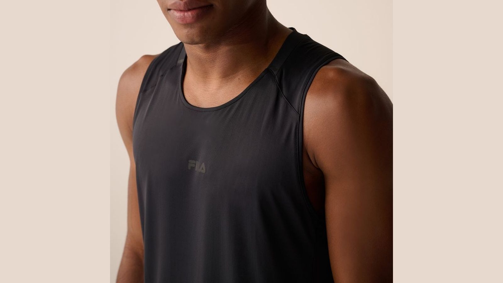 Regata masculina confeccionada em malha de poliamida. Modelagem slim fit, ajustada ao corpo, com fendas laterais na barra para proporcionar melhor mobilidade. Seu tecido contém a tecnologia FLOW, que oferece secagem rápida e mantém o corpo na temperatura ideal para a prática esportiva. Possui gola interrompida na parte frontal com costuras rebatidas e transfer decorativo sobre o travete, recortes nos ombros com costura rebatida, costuras laterais deslocadas para frente, fendas laterais na barra com transfer decorativo sobre o travete e logo Fila Letter em termo centralizado na parte frontal superior.