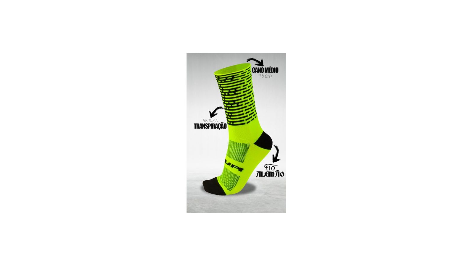 MEIA HUPI ESTAMPA AMARELO NEON/PRETO 34/38