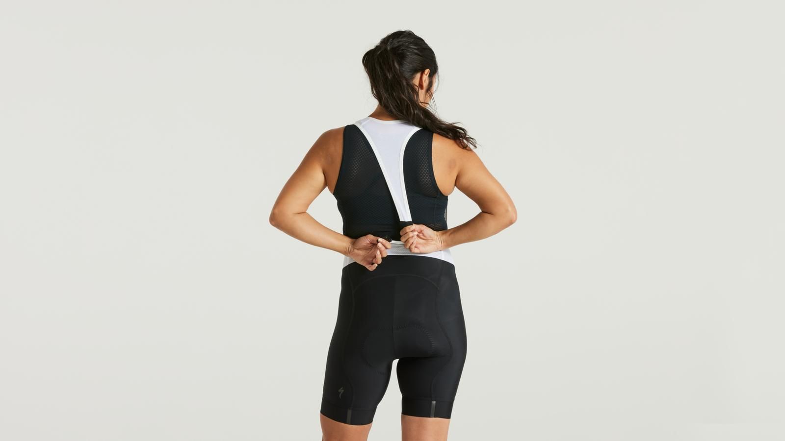 Projetamos uma estrutura ajuste suspenso e alça aberta, desenvolvida para manter o shorts no lugar sem pressionar a parte superior do corpo. As alças elásticas são super macias e confortáveis no contato com a pele e acomodam troncos com comprimento maior com facilidade. Uma placa traseira central não-elástica é cortada a laser para prover ventilação e ancorar a parte de trás do bretelle para maior estabilidade. Enquanto isso, o acabamento da ponta com infusão de silicone, proporciona um aperto suave e seguro nas pernas, a fim de garantir o ajuste perfeito no corpo.