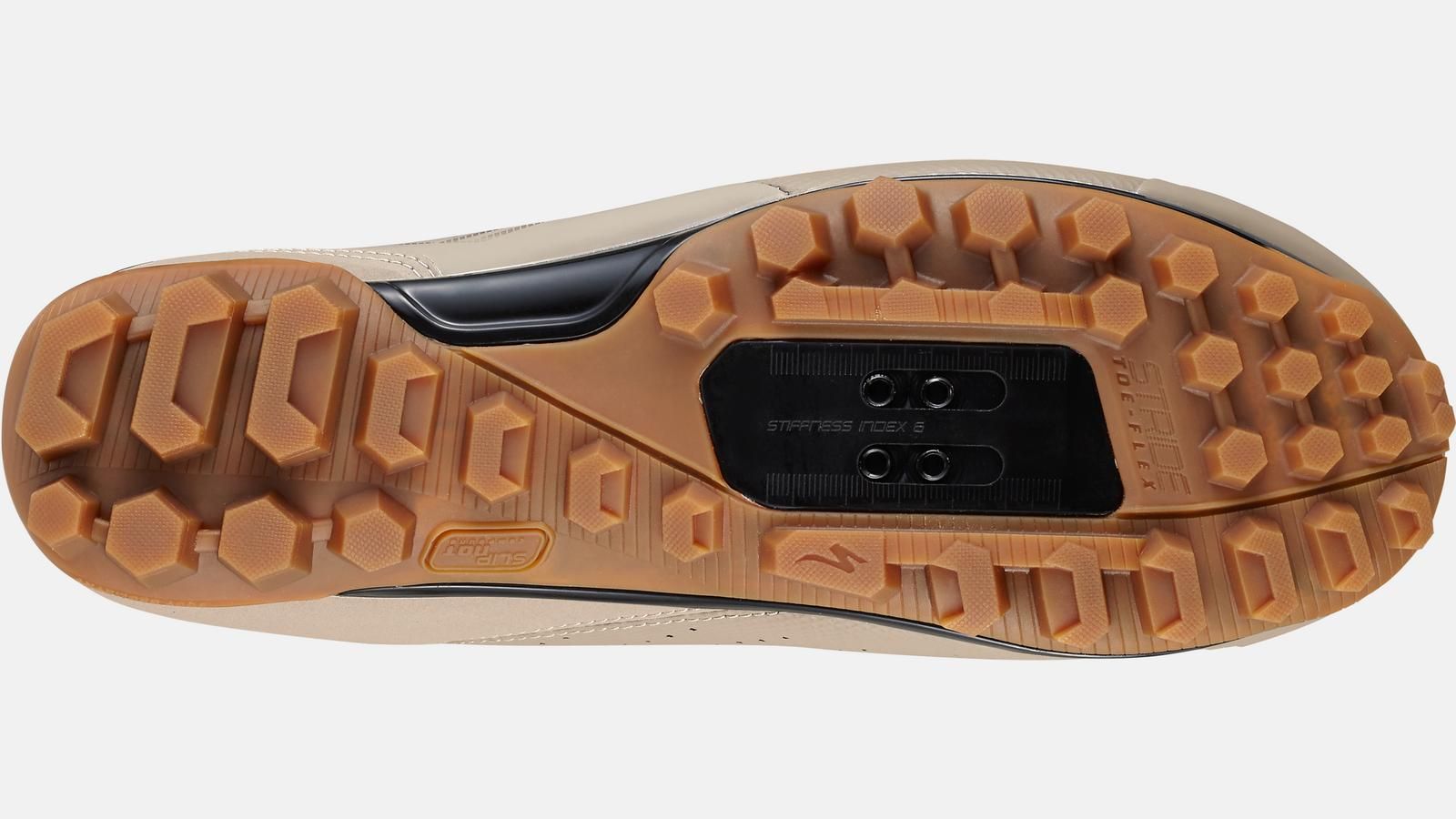 A tecnologia STRIDE toe-flex permite o movimento natural dos dedos fora da bicicleta, mas mantém a rigidez para pedalar: Índice de rigidez 6.0