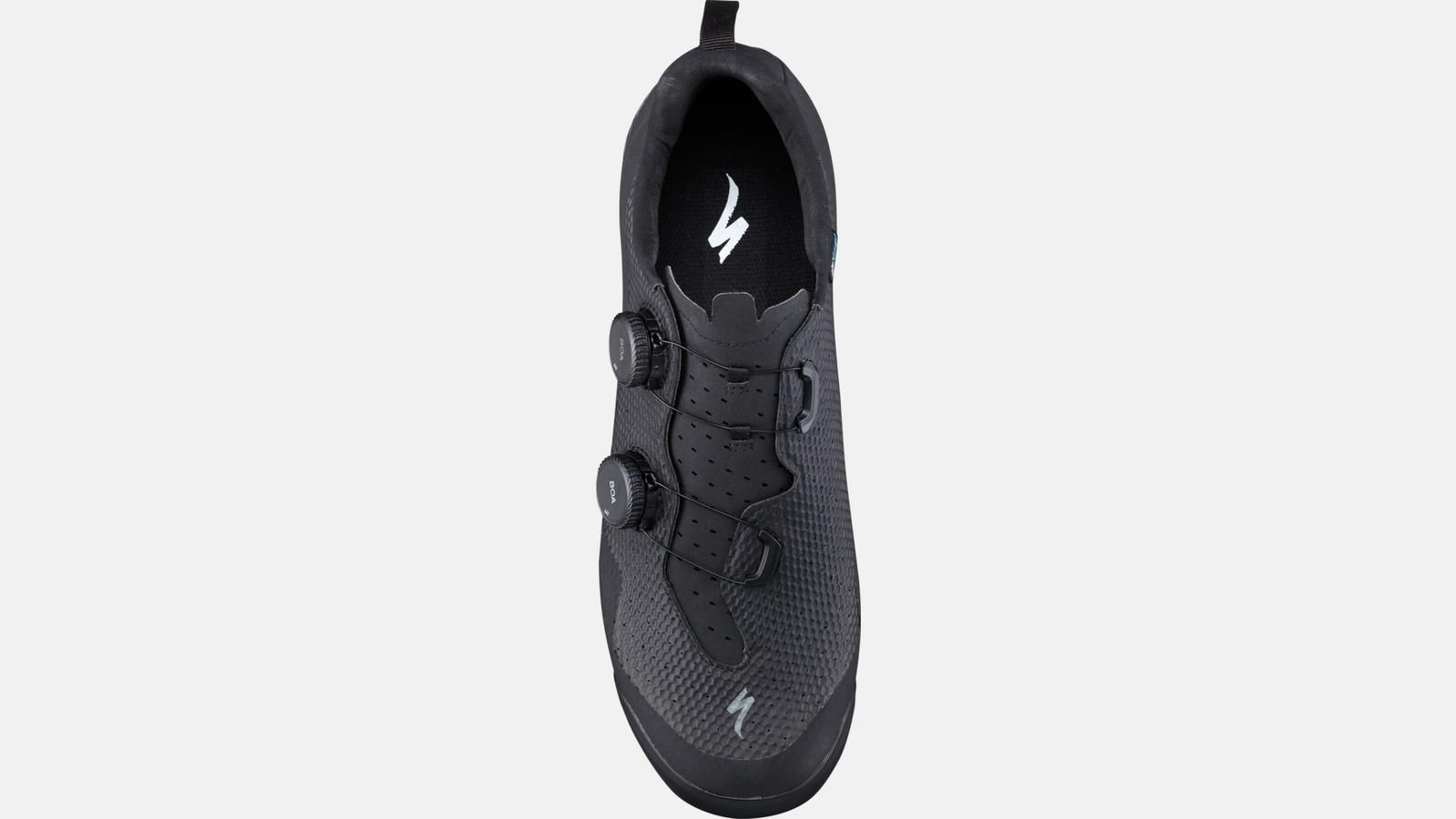 A tecnologia Carbon STRIDE toe-flex permite o movimento natural dos dedos fora da bicicleta, mas mantém a rigidez para pedalar: Índice de rigidez 10.0