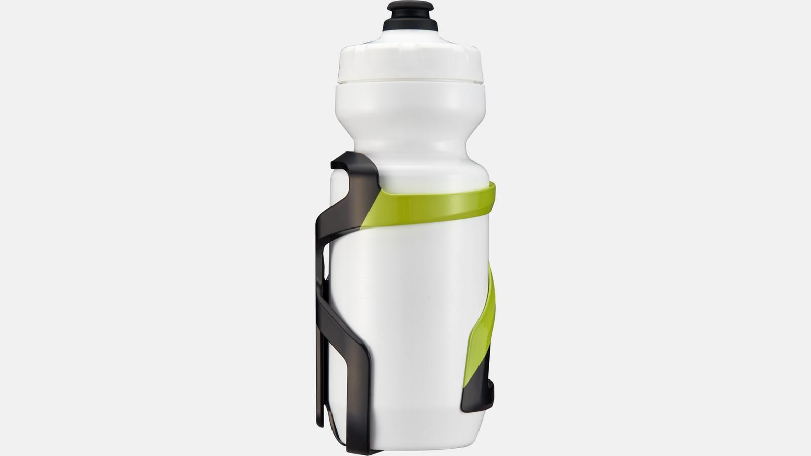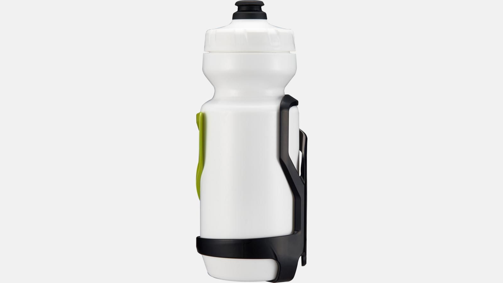 Design com carregamento na lateral permite uma retenção segura da garrafa com acessibilidade fácil para quadros com uma área compacta para suportes de garrafa.